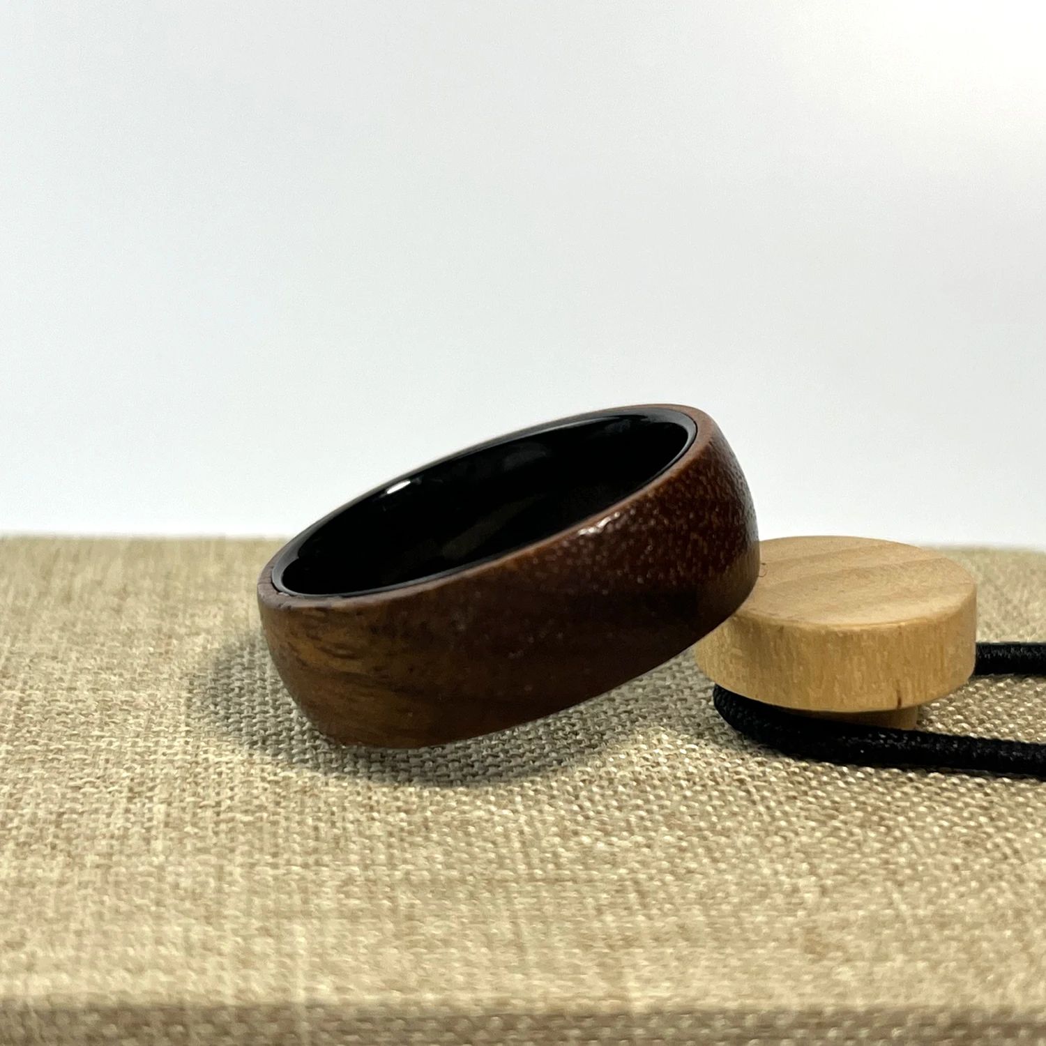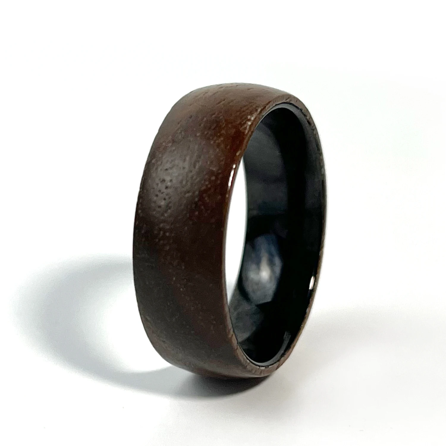 This ring integrates tungsten carbide rings with black zirconium and a natural rose wood inlay, delivering exceptional hardness and scratch resistance. We specify thickness of approximately 2.2 to 2.3 mm, with width options from 5 to 14 mm providing flexibility for user preferences. The ring’s plating includes black gun and zinc finishes enhancing corrosion resistance. Manufacturing employs precise inlay techniques for rose wood and optional meteorite or CZ/Swarovski accents. The band weighs ~0.020 kg, balancing robustness and wear comfort. Its cobalt-free, hypoallergenic composition ensures compliance with materials safety standards demanded in wholesale tungsten rings markets.