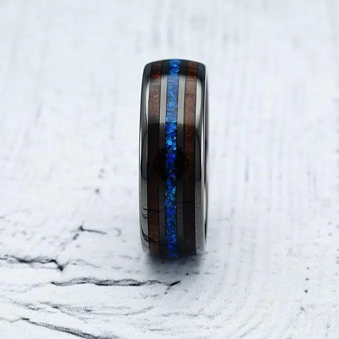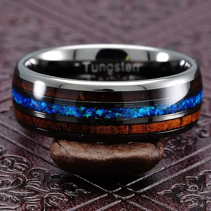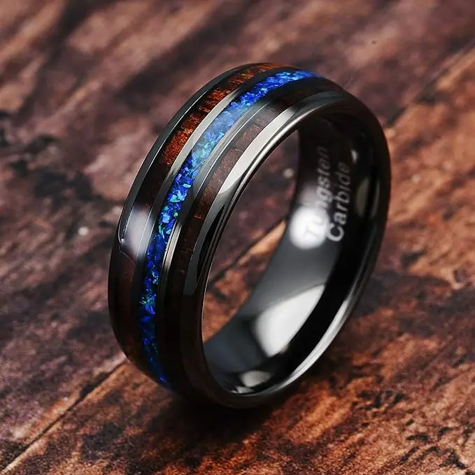 Item Model | Ouyuan Jewelry wholesale price Hawaii Koa Wood and Blue Opal Inlay Tungsten Carbide Ring men fashion rings |