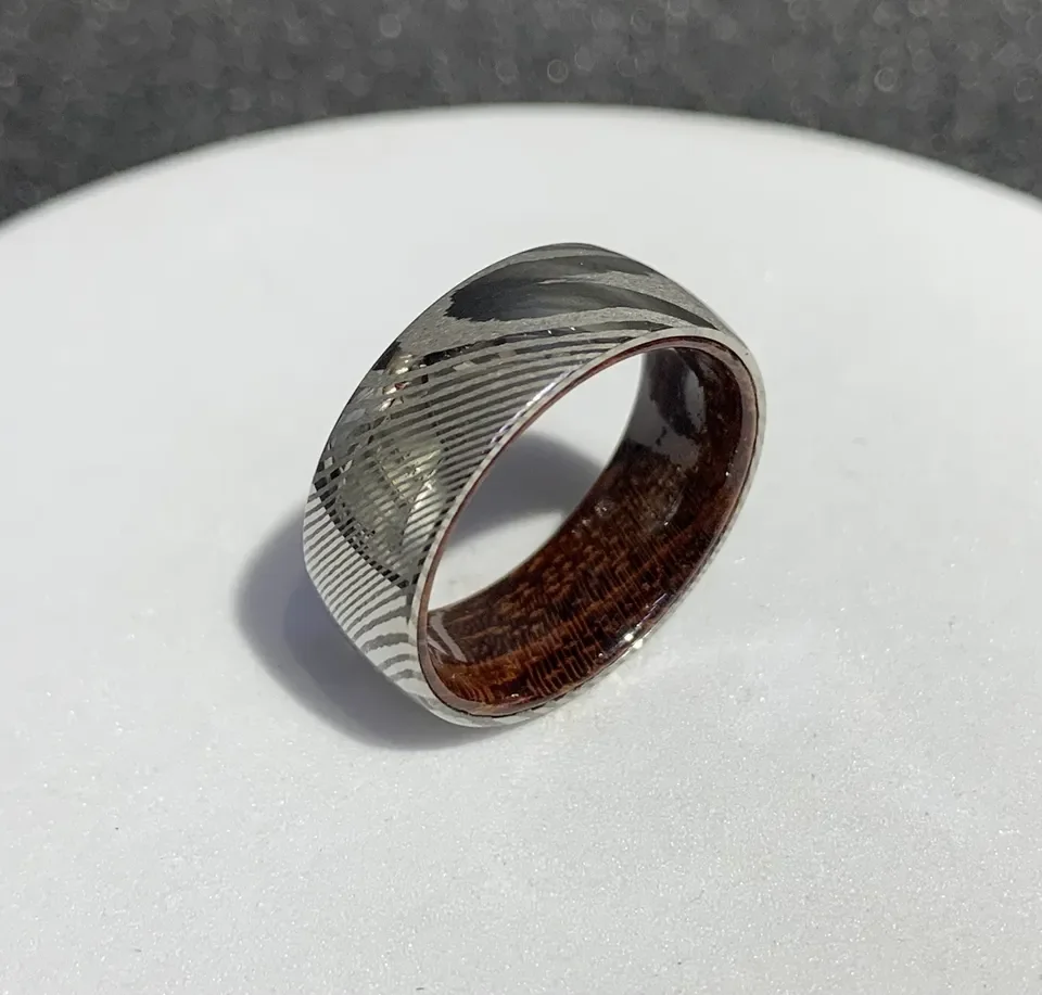 • Ouyuan Wholesale Jewelry 8mm Gold Wedding Bands Damascus Steel Rings for Men Women Two Tone Domed Band Matte Finish Comfort Fit