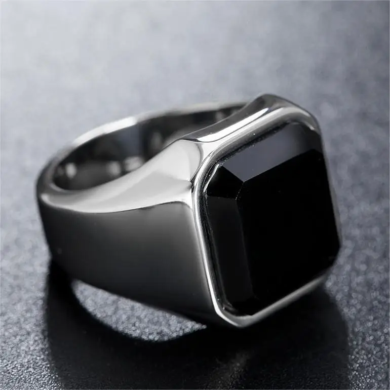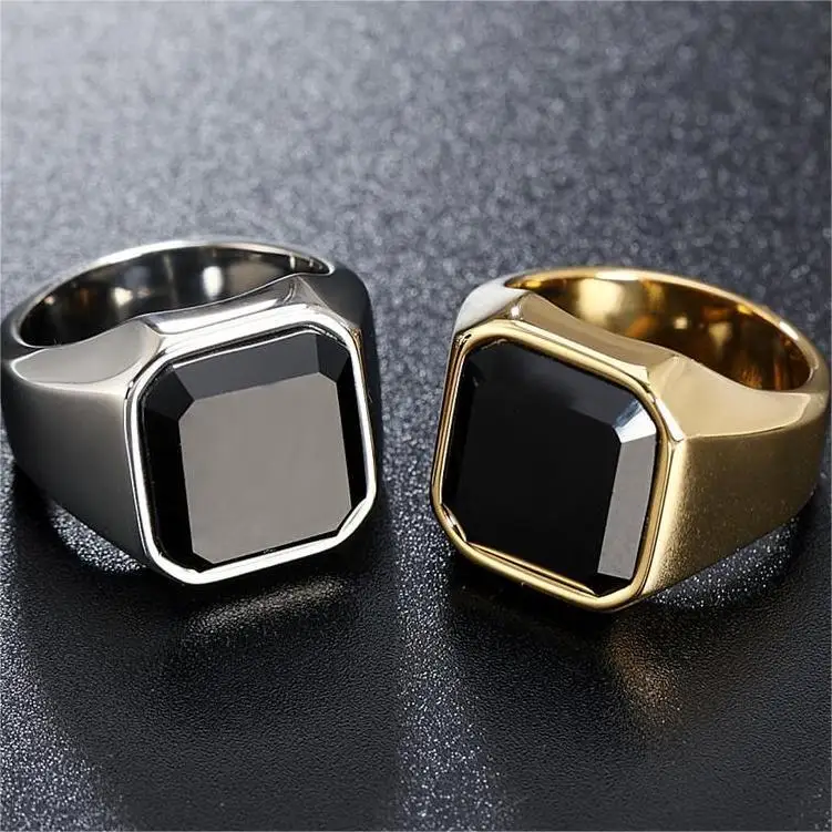 Personality Black Onyx Gem Men's Titanium Steel Ring Hiphop Ring Set Gold Filled Jewelry Plated 18k Plated Men