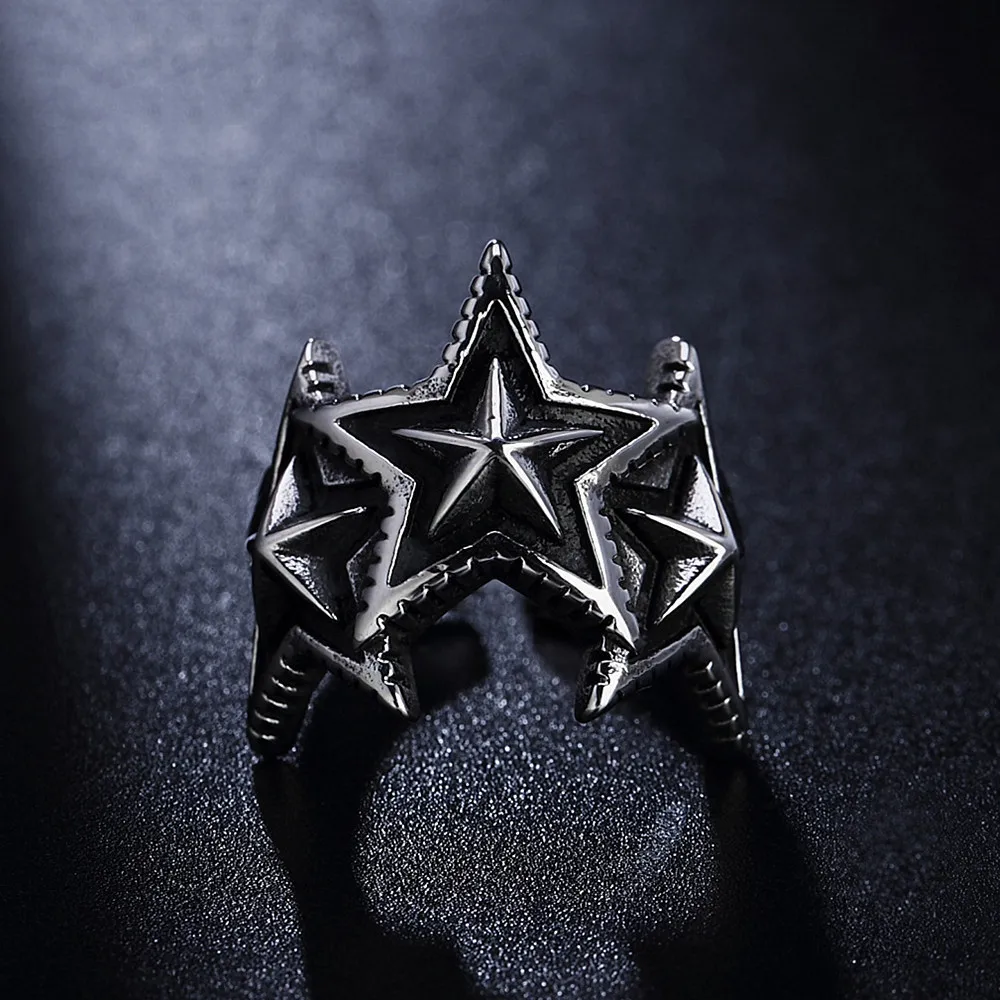 Punk Jewelry Stainless Steel Star Finger Ring for Unisex