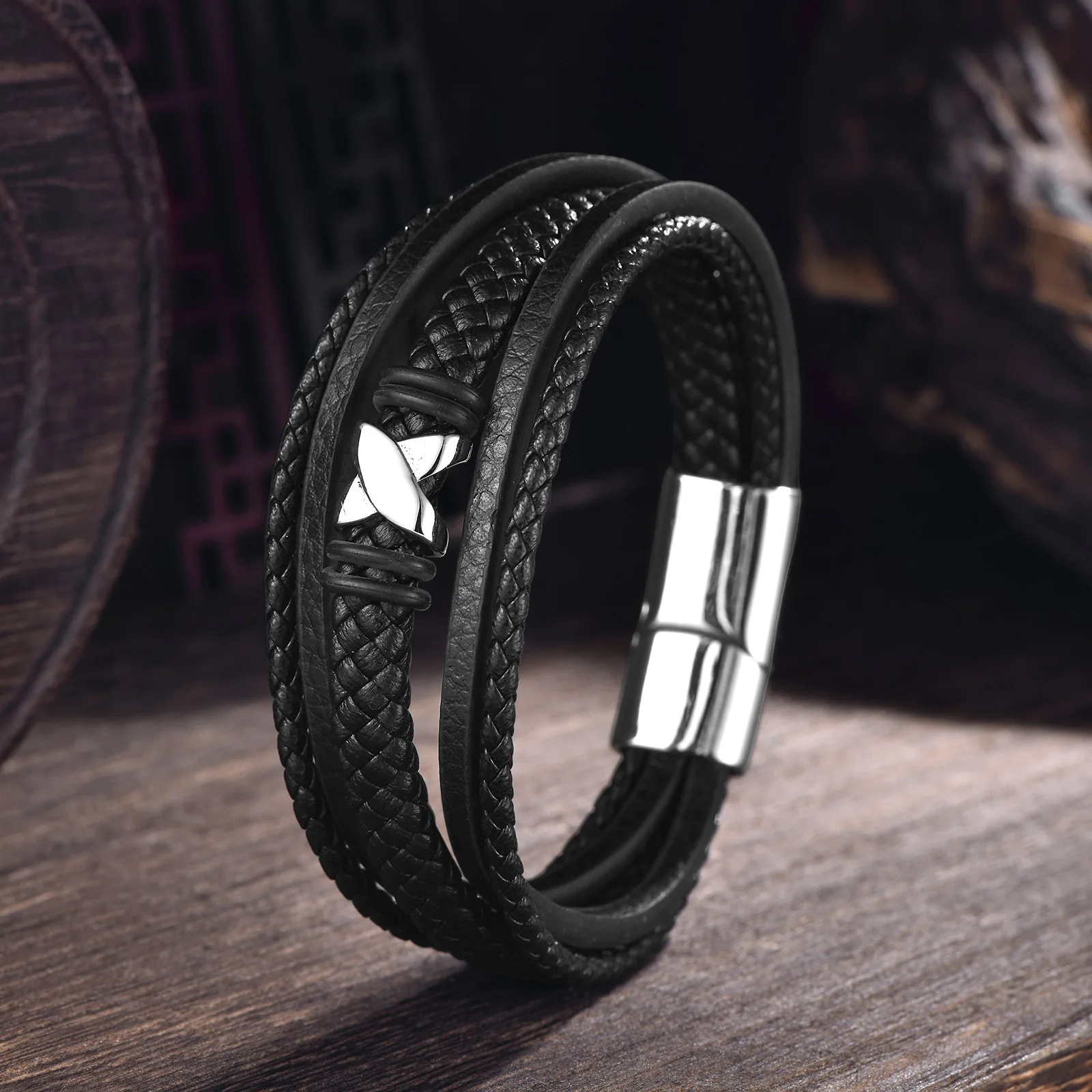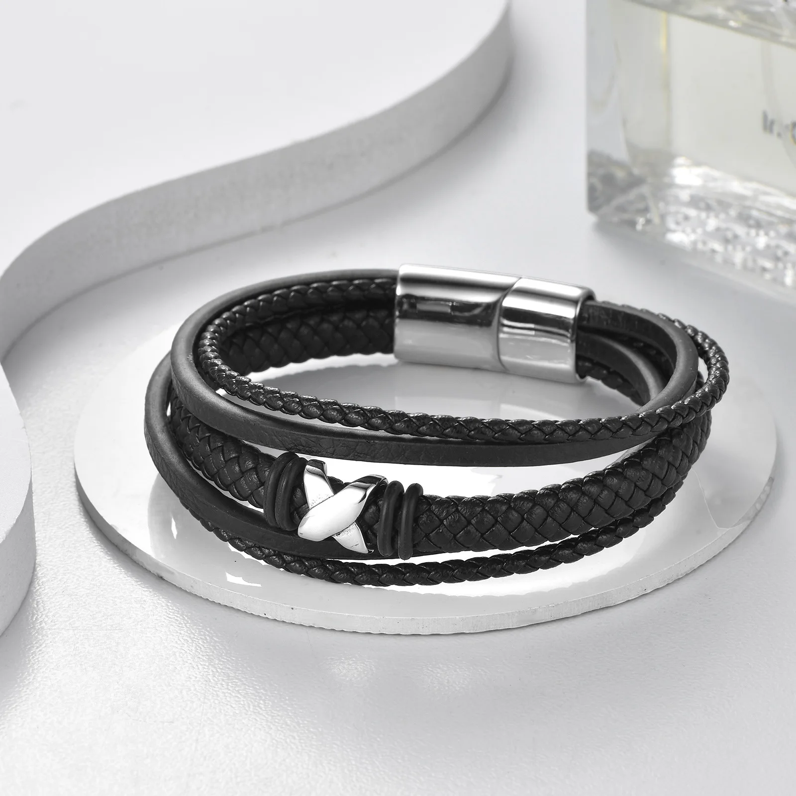 Item Model | Ready To Ship Personalized Fashion Jewelry For Men Women Silver Braided Leather Bracelet Men's Bracelet Steel Bracelet |
