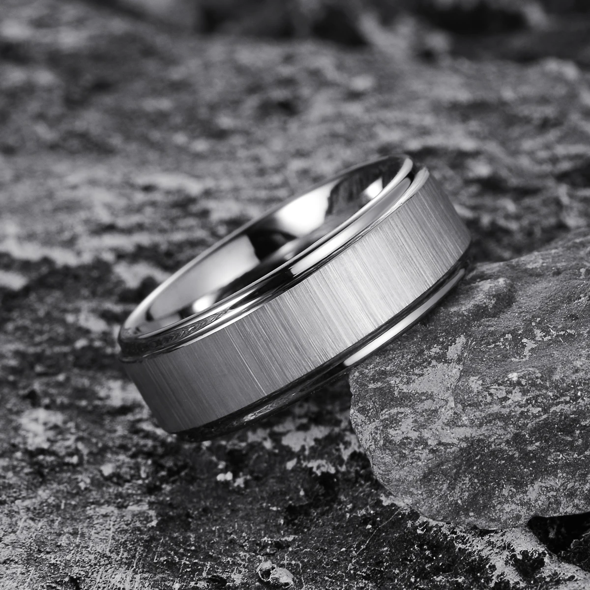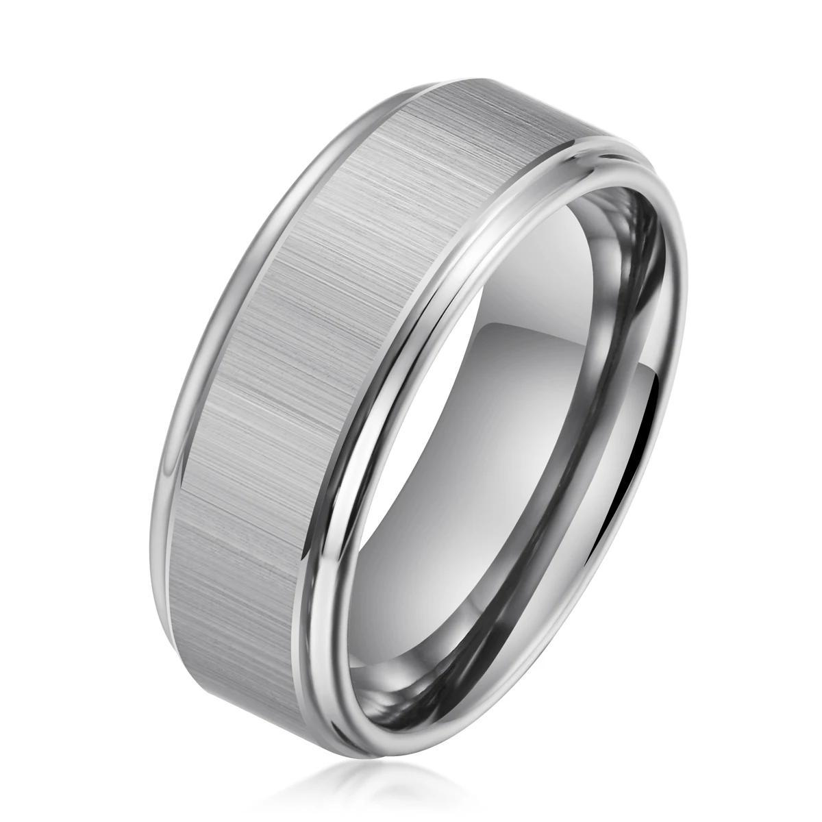 This high-quality tungsten ring features an 8mm silver matte finish with precise grooves and beveled edges, delivering durable, comfortable wear. Ideal for professional custom tungsten rings and unisex applications.