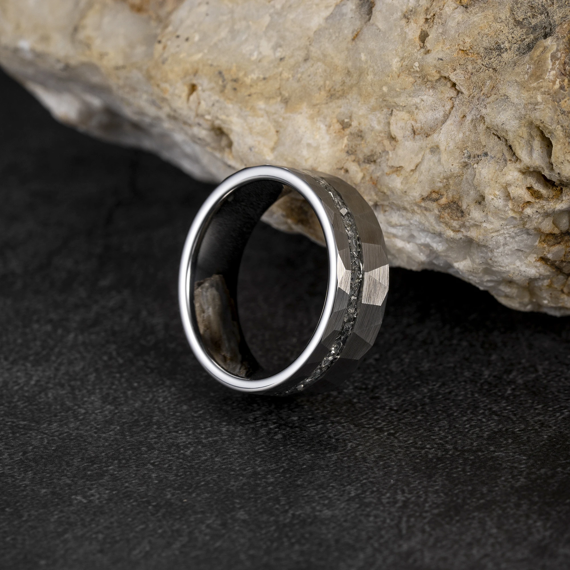 Item Model | Silver plated Meteorite Inlay tungsten carbide ring mens and women wedding band simply design men tungsten meteorite ring |