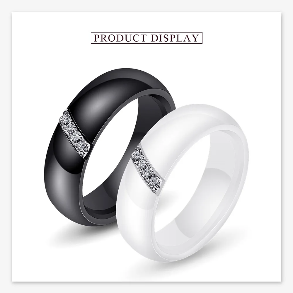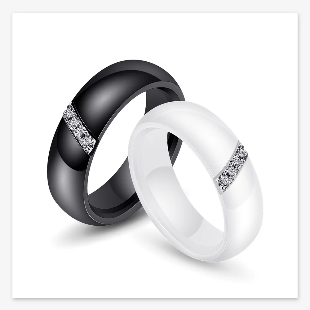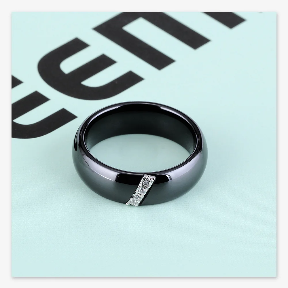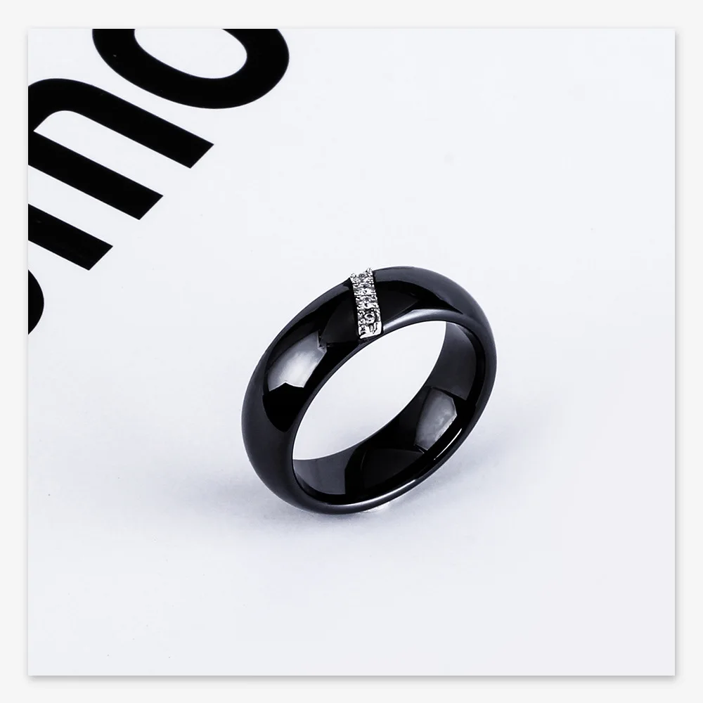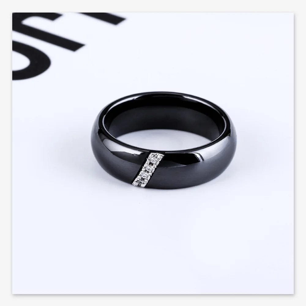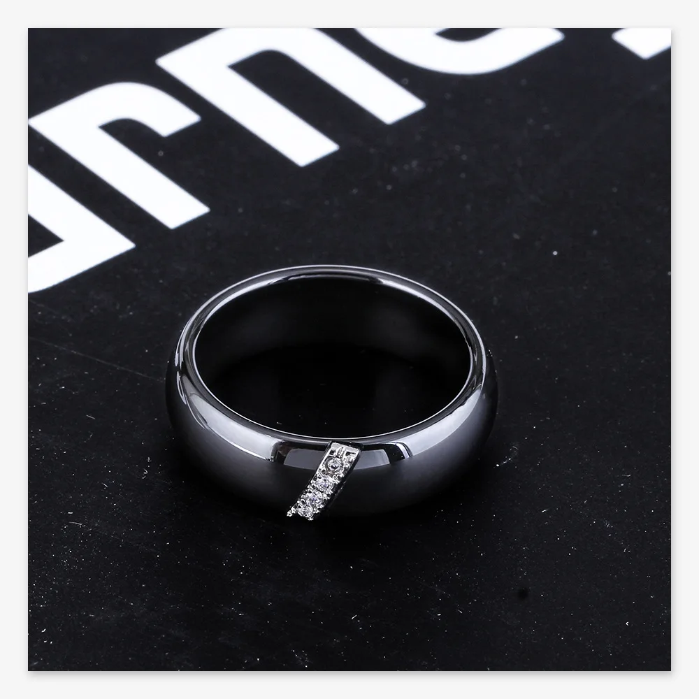 Crafted from high-grade ceramic, this ring integrates a nanoscale polished finish enhancing surface hardness and scratch resistance, distinguishing it from conventional gold rings for men. The inlaid zircon stones provide quantified reflective brilliance while retaining structural integrity under daily wear. Technical specifications include a weight of 0.010 kg and precise sizing increments (6–10), facilitating compatibility with standardized men rings sizing systems. The black zinc plating adds corrosion resistance and maintains coloration consistency, critical for long-term durability. This design meets quality benchmarks for custom tungsten rings and tungsten carbide rings alternatives, providing additional options within product assortments for wholesale tungsten rings distributors.