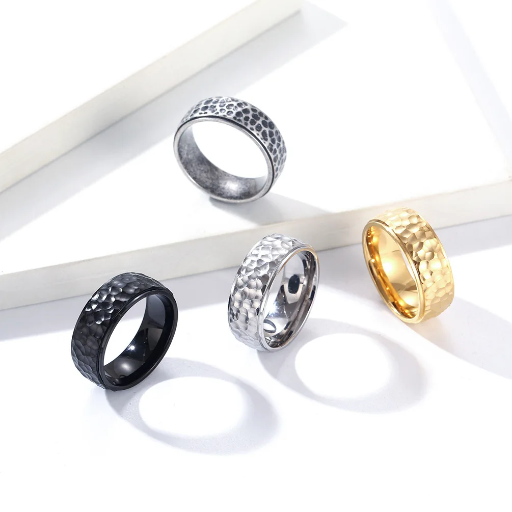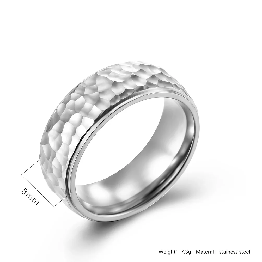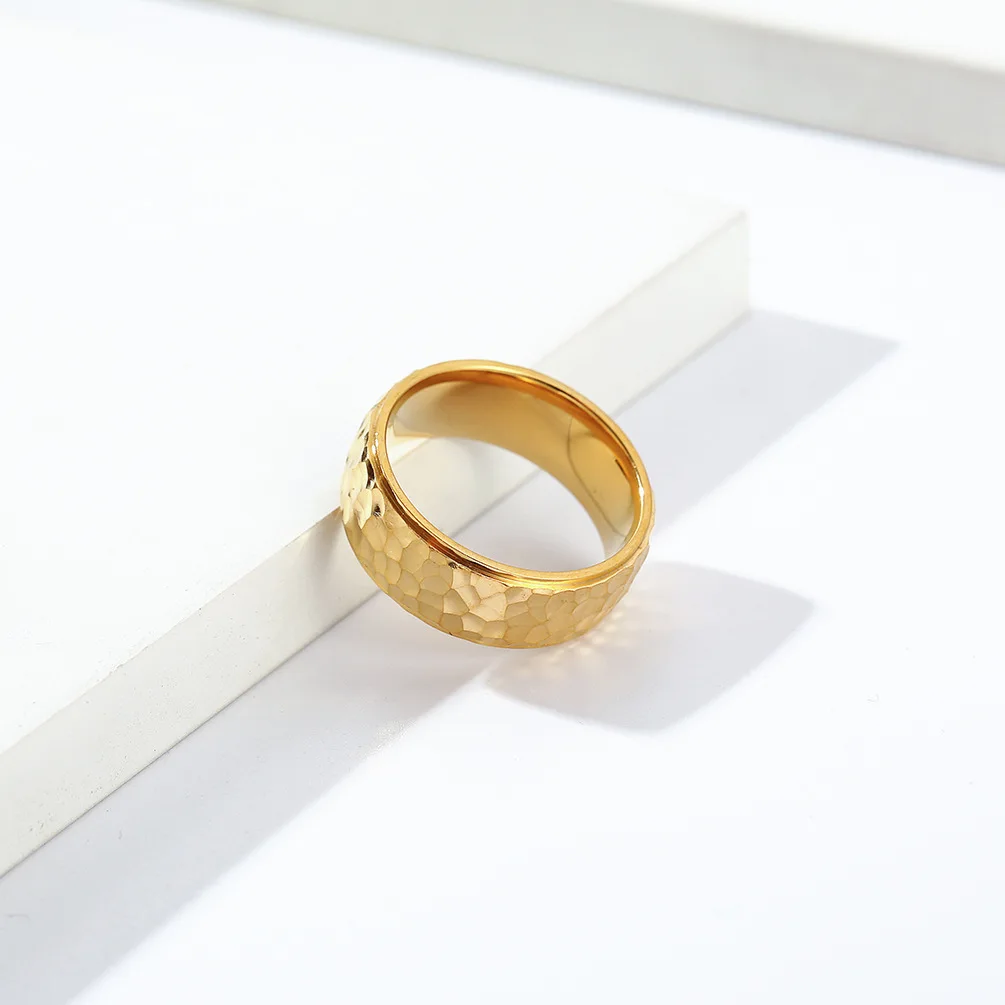 • Trendy 6mm 8mm Men Women Couple Rings Fashion Hand Hammered Irregular Figure Stainless Steel 18k Gold Plating Ring for Men