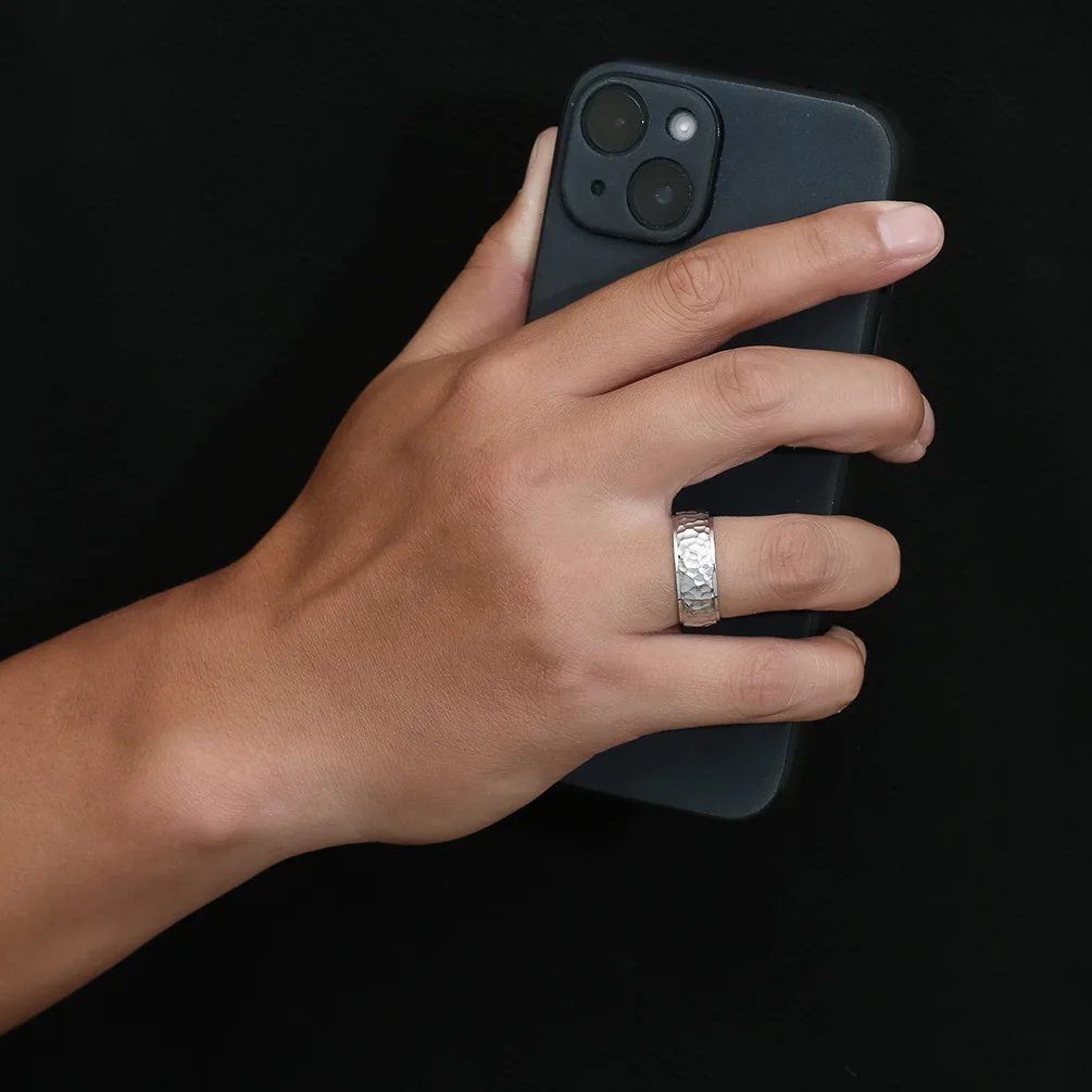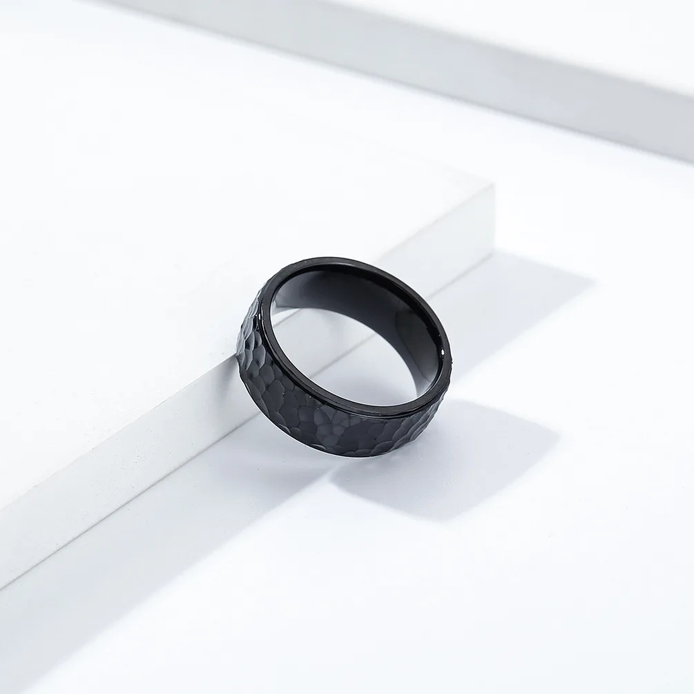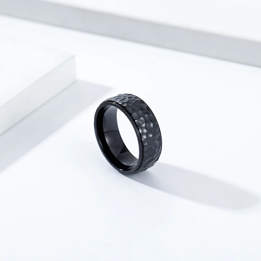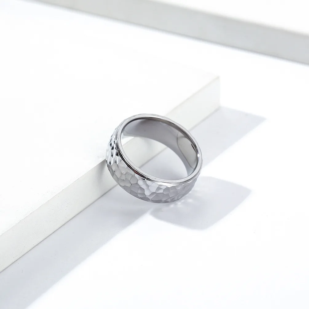 • Trendy 6mm 8mm Men Women Couple Rings Fashion Hand Hammered Irregular Figure Stainless Steel 18k Gold Plating Ring for Men
