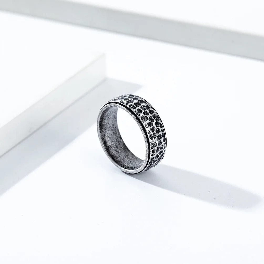 Trendy 6mm 8mm Men Women Couple Rings Fashion Hand Hammered Irregular Figure Stainless Steel 18k Gold Plating Ring for Men
