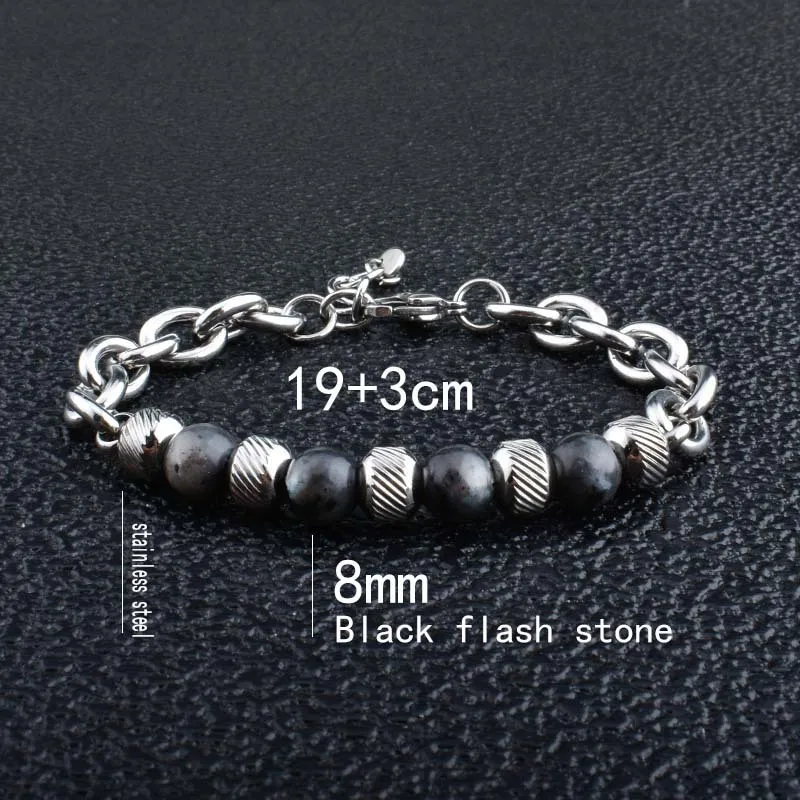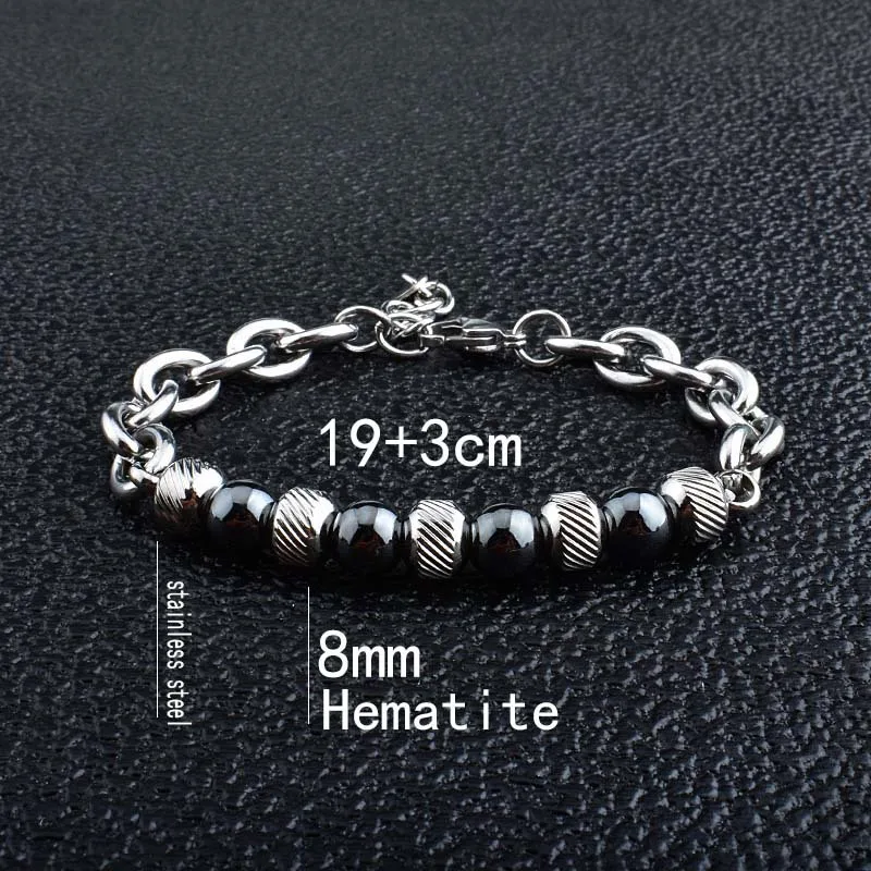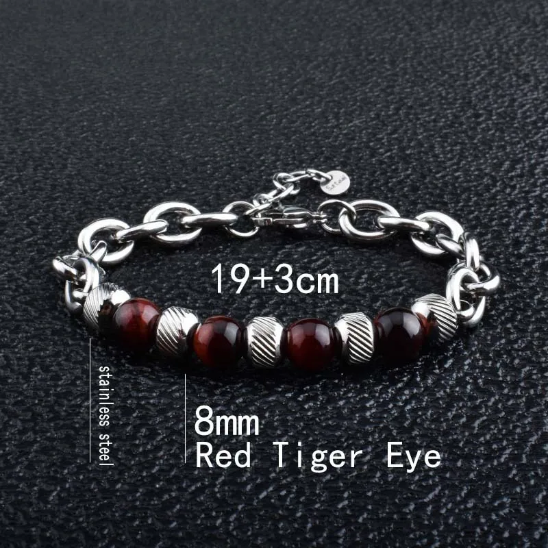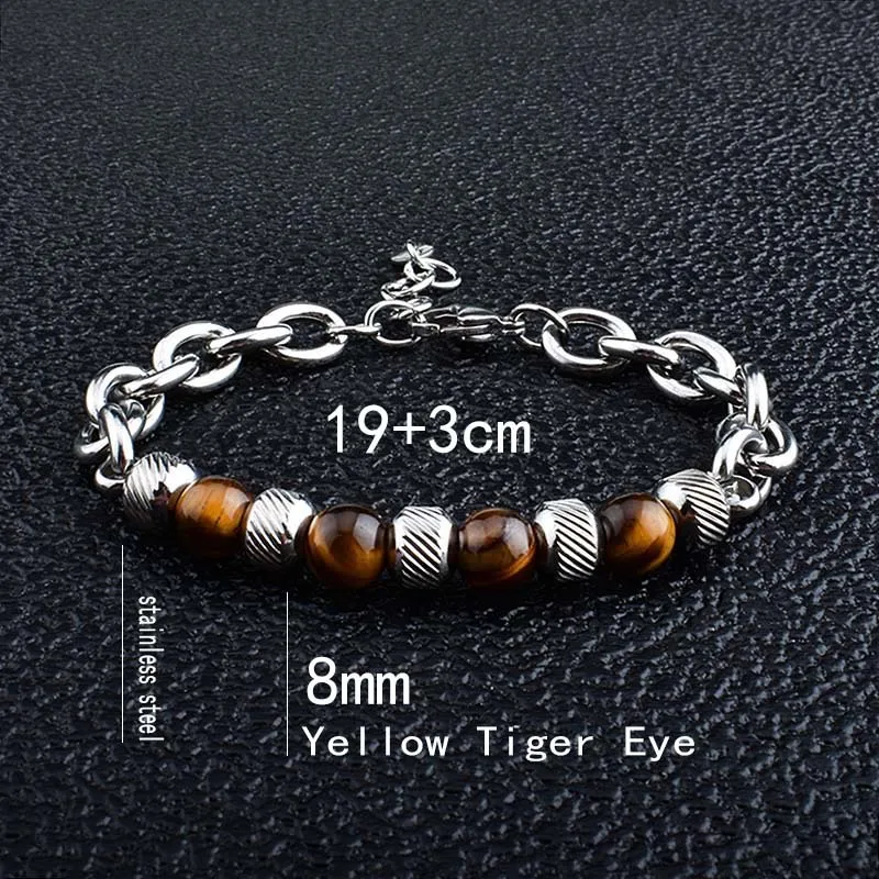 • Trendy New Adjustable Silver Plated Stainless Steel Tiger Eye Stone Men's Fashion Beaded Bracelet