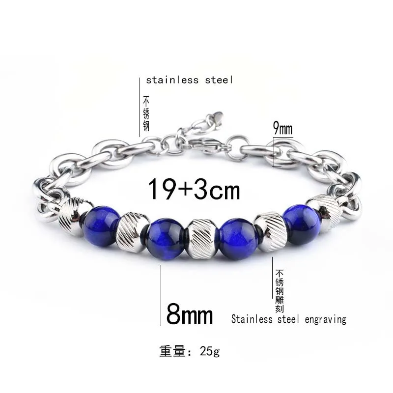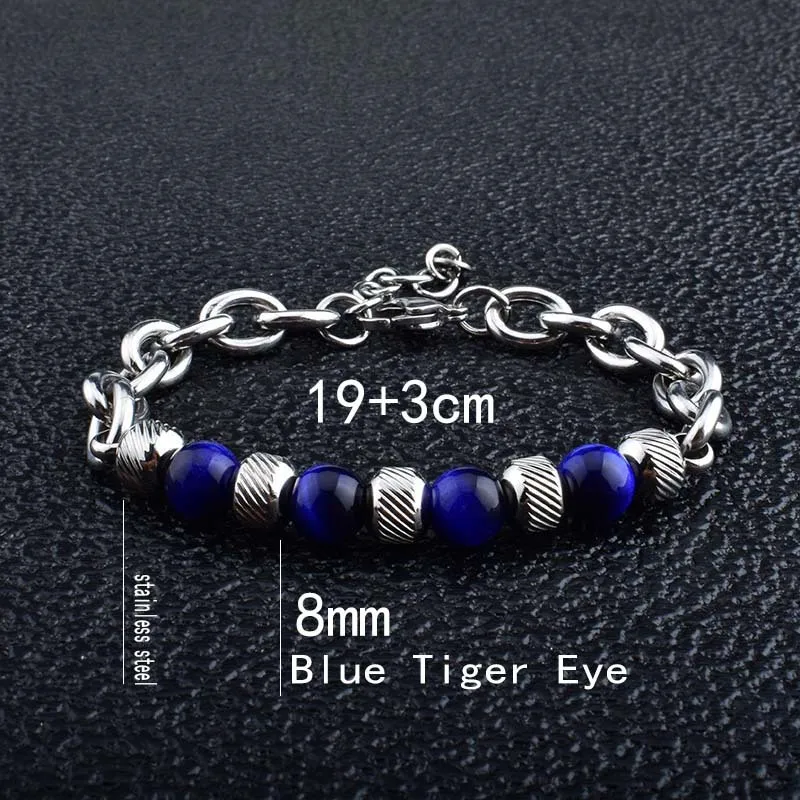 Trendy New Adjustable Silver Plated Stainless Steel Tiger Eye Stone Men's Fashion Beaded Bracelet