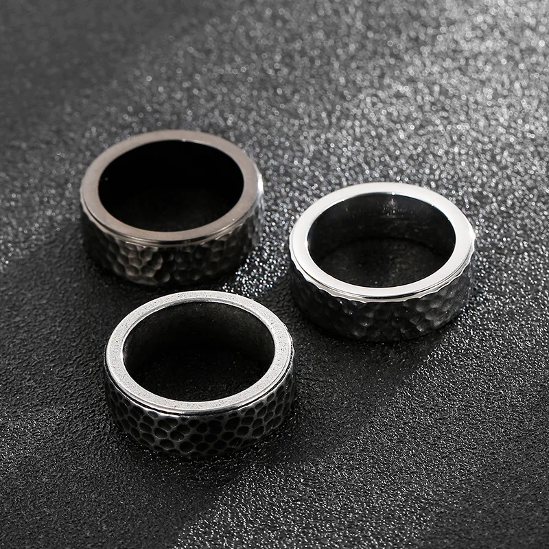 Viking Hammered Damascus Rings Gold Couple Fashion Jewelry Stainless Steel Tungsten Wedding Rings for Men Women