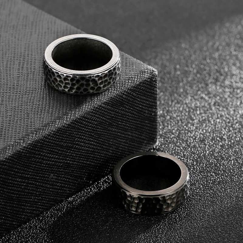 • Viking Hammered Damascus Rings Gold Couple Fashion Jewelry Stainless Steel Tungsten Wedding Rings for Men Women