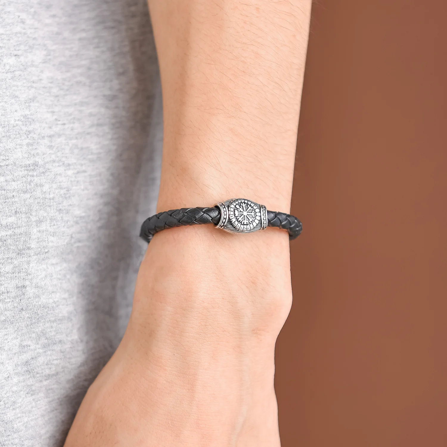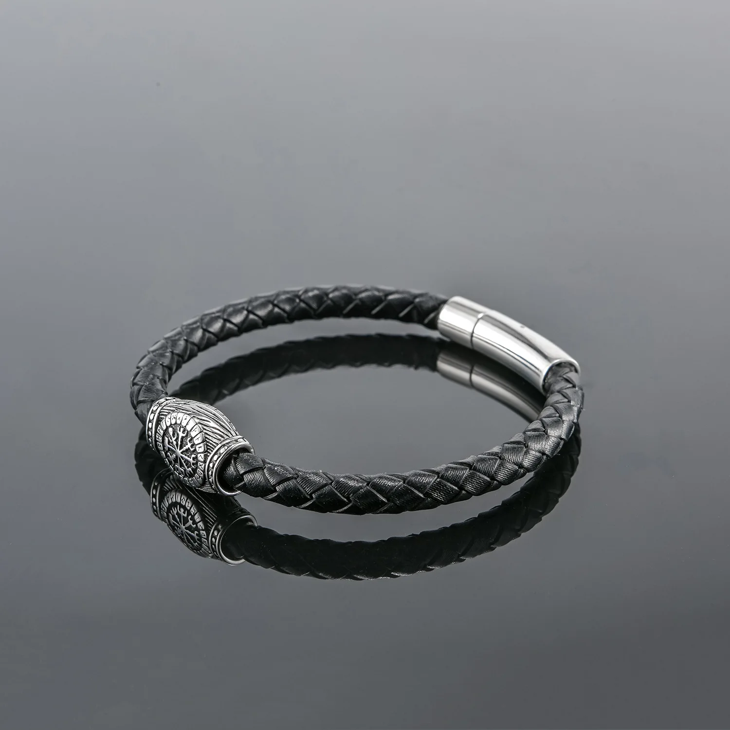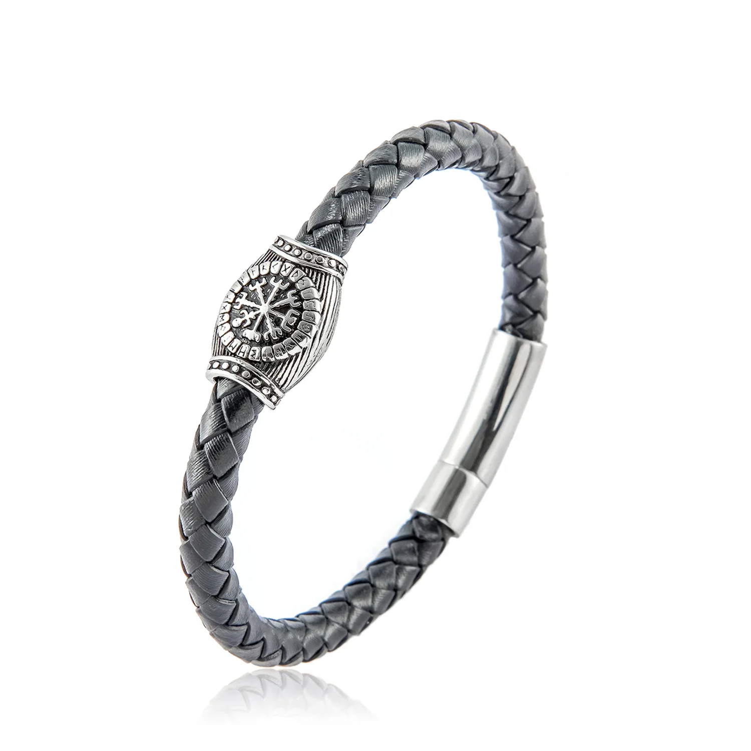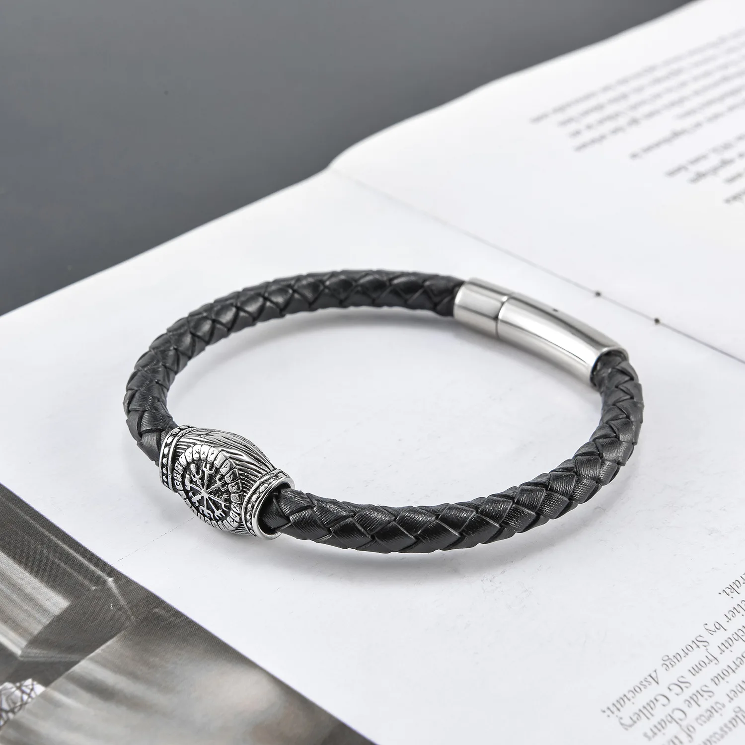 Braided Leather Bracelet; Black Leather With Silver-tone Stainless Steel Ornament, Stand Out But Not Too Gaudy, Go Well With Any Occasion, Great Way to Show You Calm and Lines of Muscle. All Made of High Quality Material, Purely Handmade Tightly Woven Bracelet, Soft and Comfortable Touch Feeling; With Special Stainless Steel Magnetic Clasp, Easy To Put On and No Worry About Losing It During Walk; Strong and Durable, Long Time To Use.