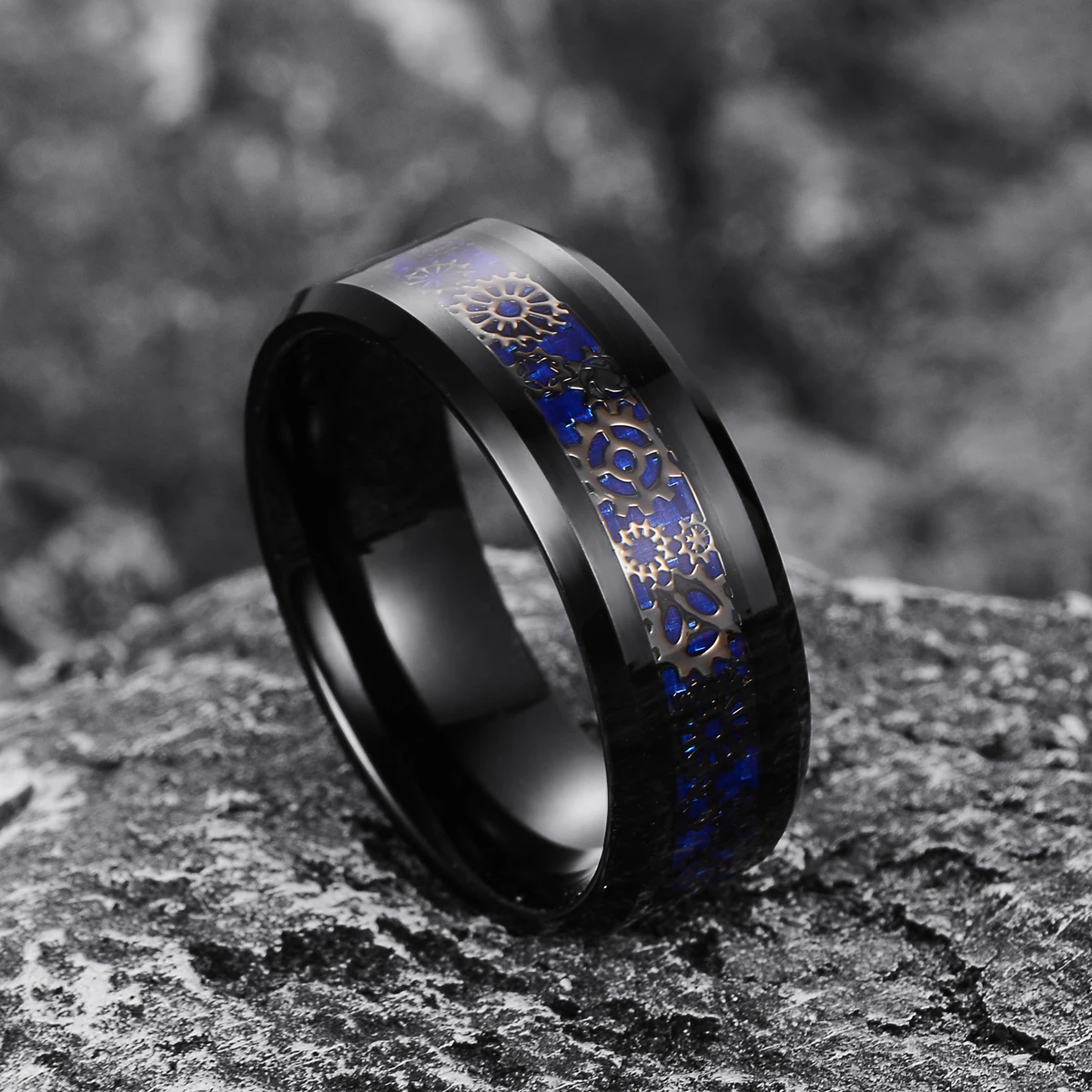 Item Model | Wedding Band Jewelry Inlay Blue Carbon Fiber Ring Vintage Punk Gear Wheel Ring for Man Women Rings Tungsten Jewelri |