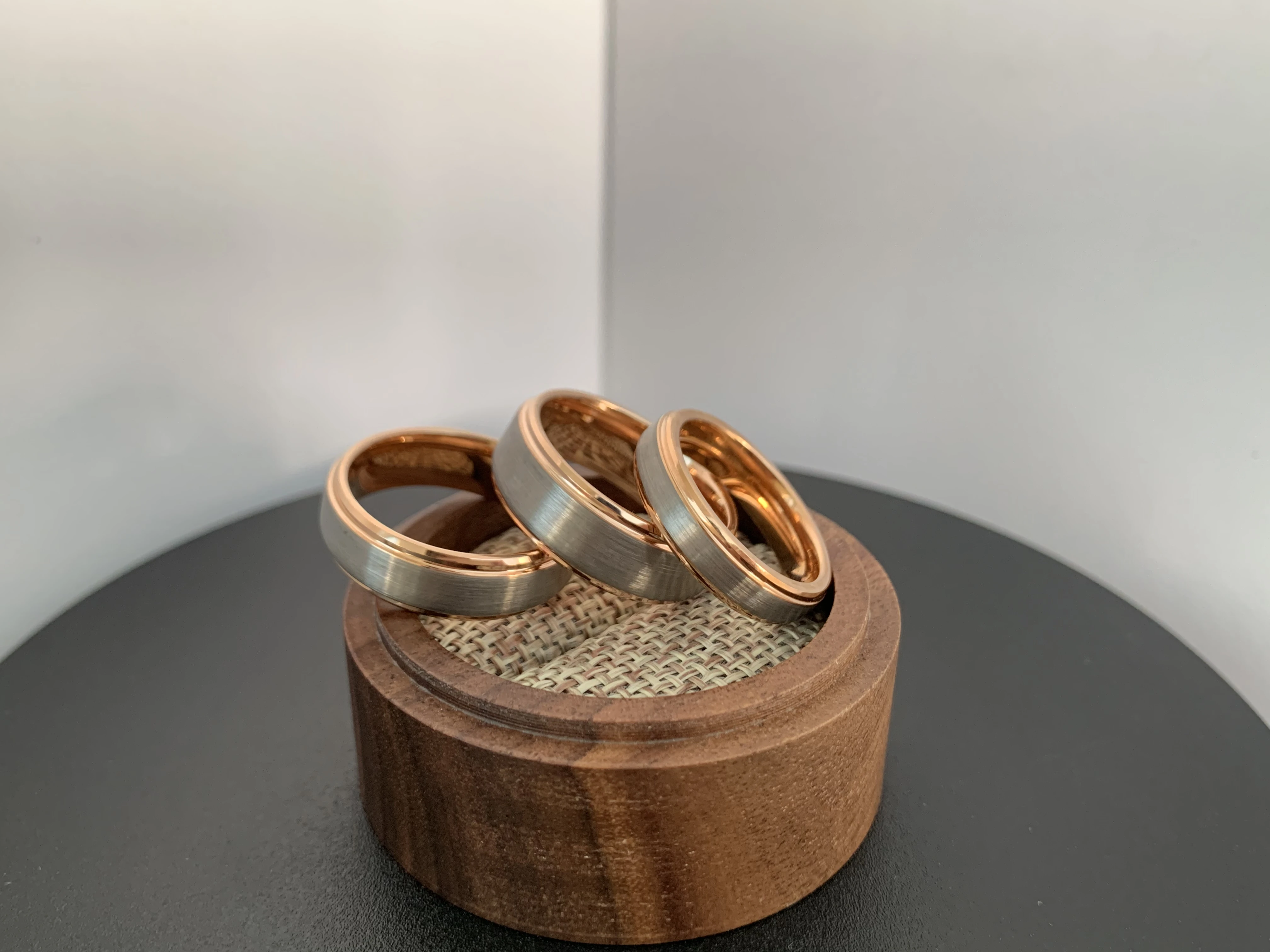 New design wood stripe sticker set ring with tungsten ring prices