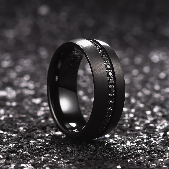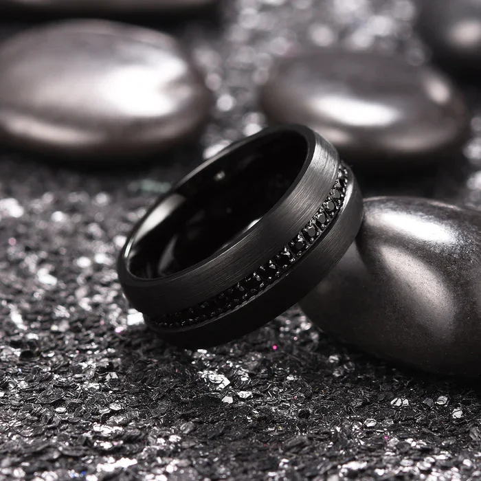 • Wholesale Domed Brushed 8mm Cz Stone Inlay Black Tungsten Ring for Men Women Engagement Wedding Band comfort Fit
