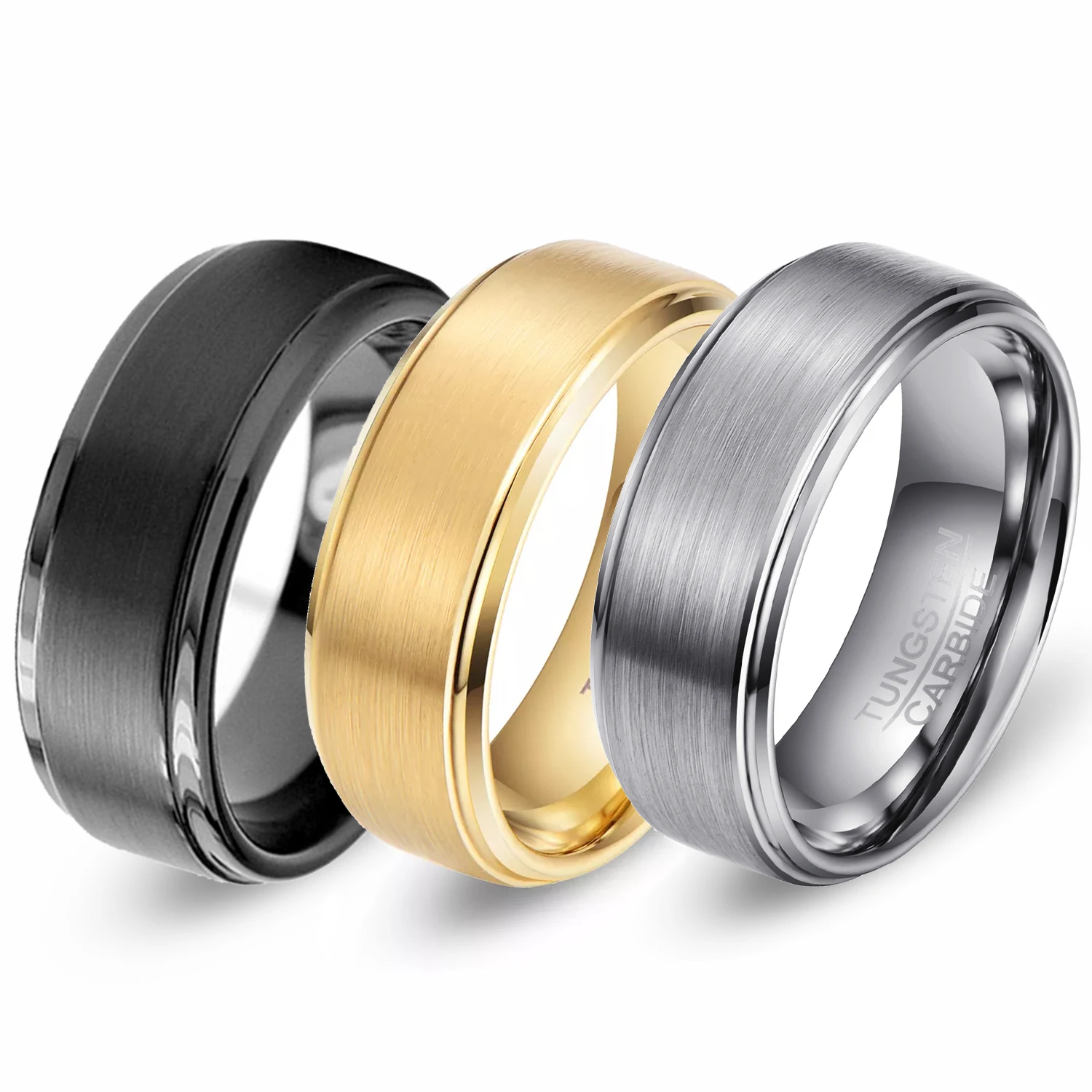 • Wholesale Engagement Ring 8mm Gold Plated Ring Men Women Trendy Wedding Band Matte Domed Comfort Fit