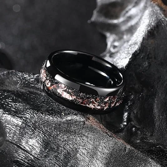 Item Model | Wholesale Factory Price Black Tungsten Wedding Rings Rose Gold Leaf Inlaid Mens Tungsten Rings Fashion Jewelry for Women Men |
