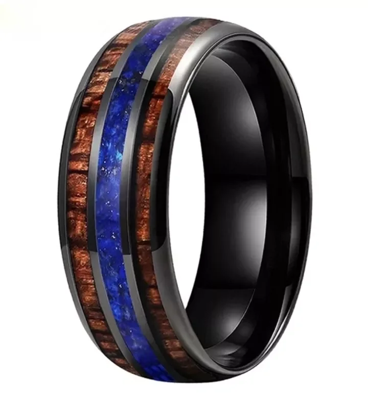 Item Model | Wholesale Factory Price Wood Lapis Lazuli Stone Tungsten Wedding Rings for Women Men Fashion Rings Custom Jewelry |
