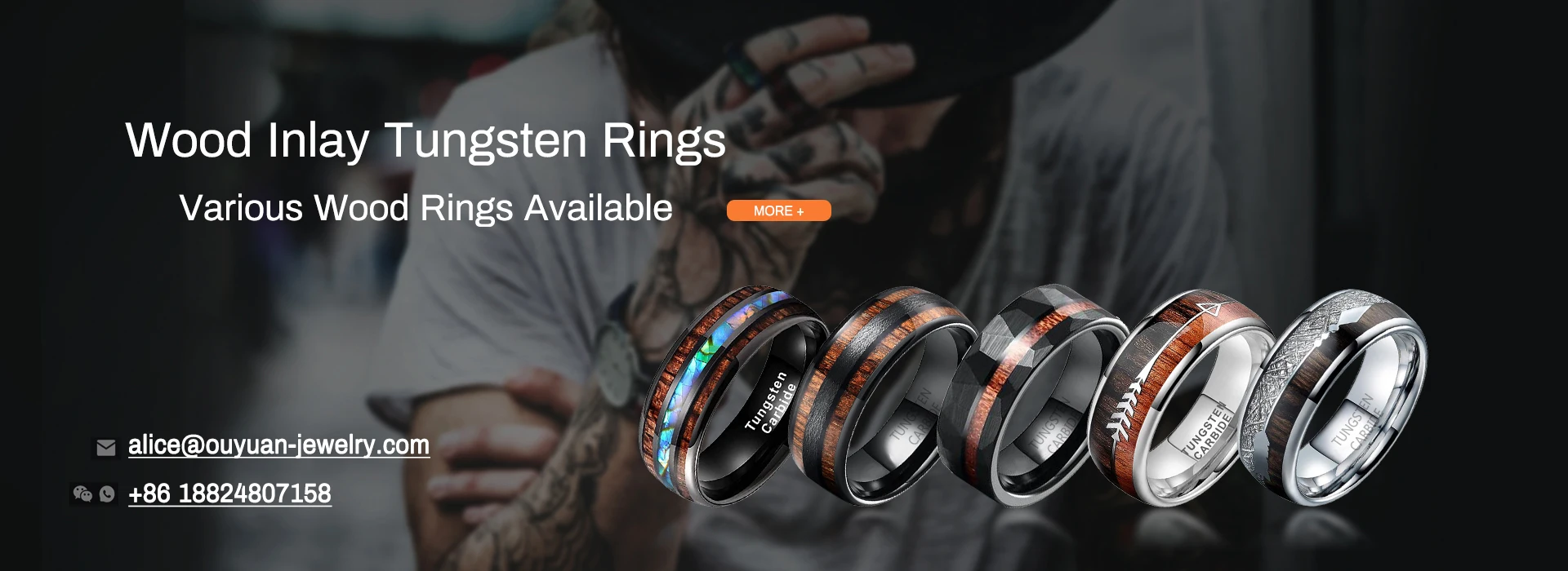 New design wood stripe sticker set ring with tungsten ring prices