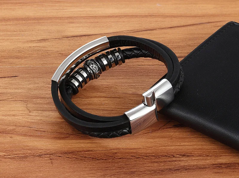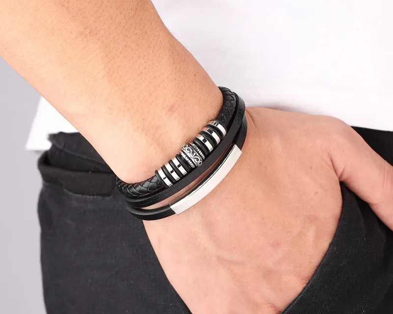 Item Model | Men's Multi-Strand Braided Leather Chain Bracelet with Magnetic Closure |