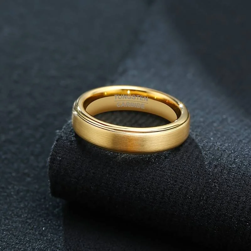 Item Model | Wholesale Luxury Jewelry Lower Price Handmade 6MM Tungsten Carbide Brushed Men Gold Rings Custom Tungsten Ring Gold Wedding Ring |