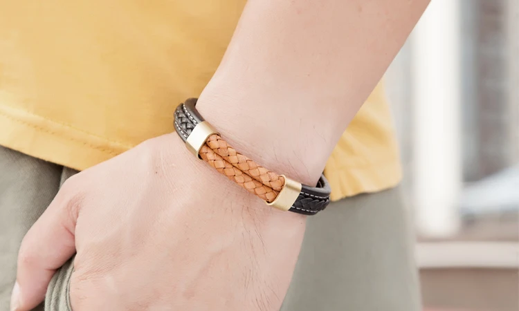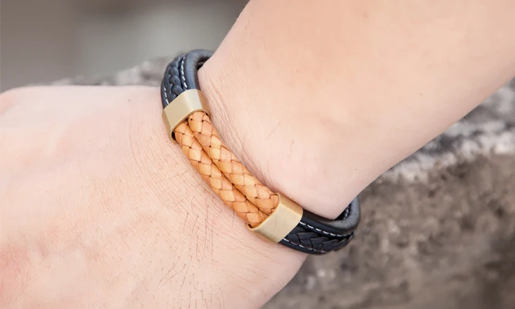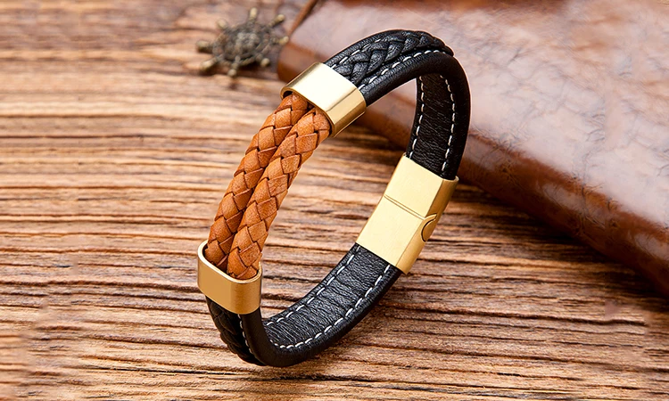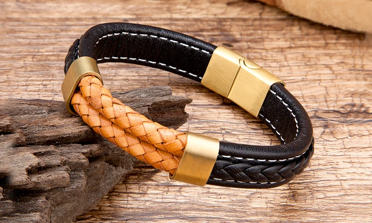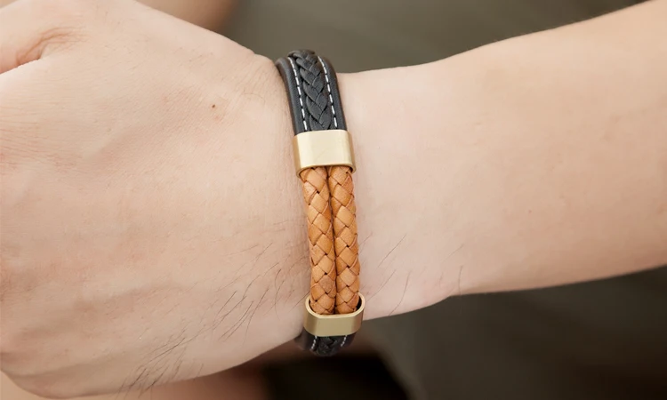 Item Model | Wholesale Luxury Rope Jewelry Gold Plated Engraved Leather Bracelet |