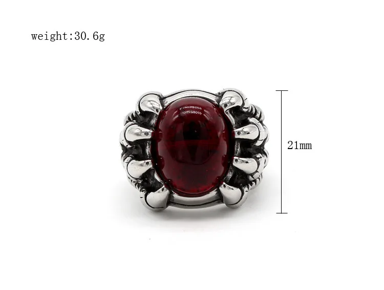 • Wholesale Personality Vintage Punk Claw Ruby Ring Titanium Steel Ring Men Stainless Steel