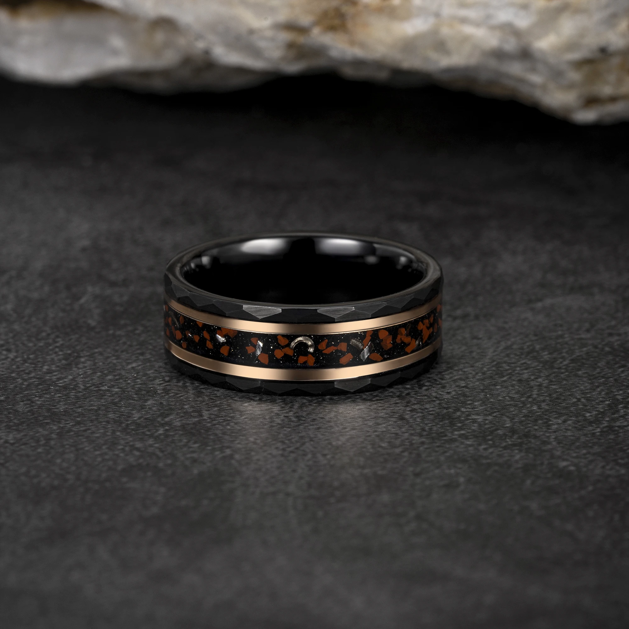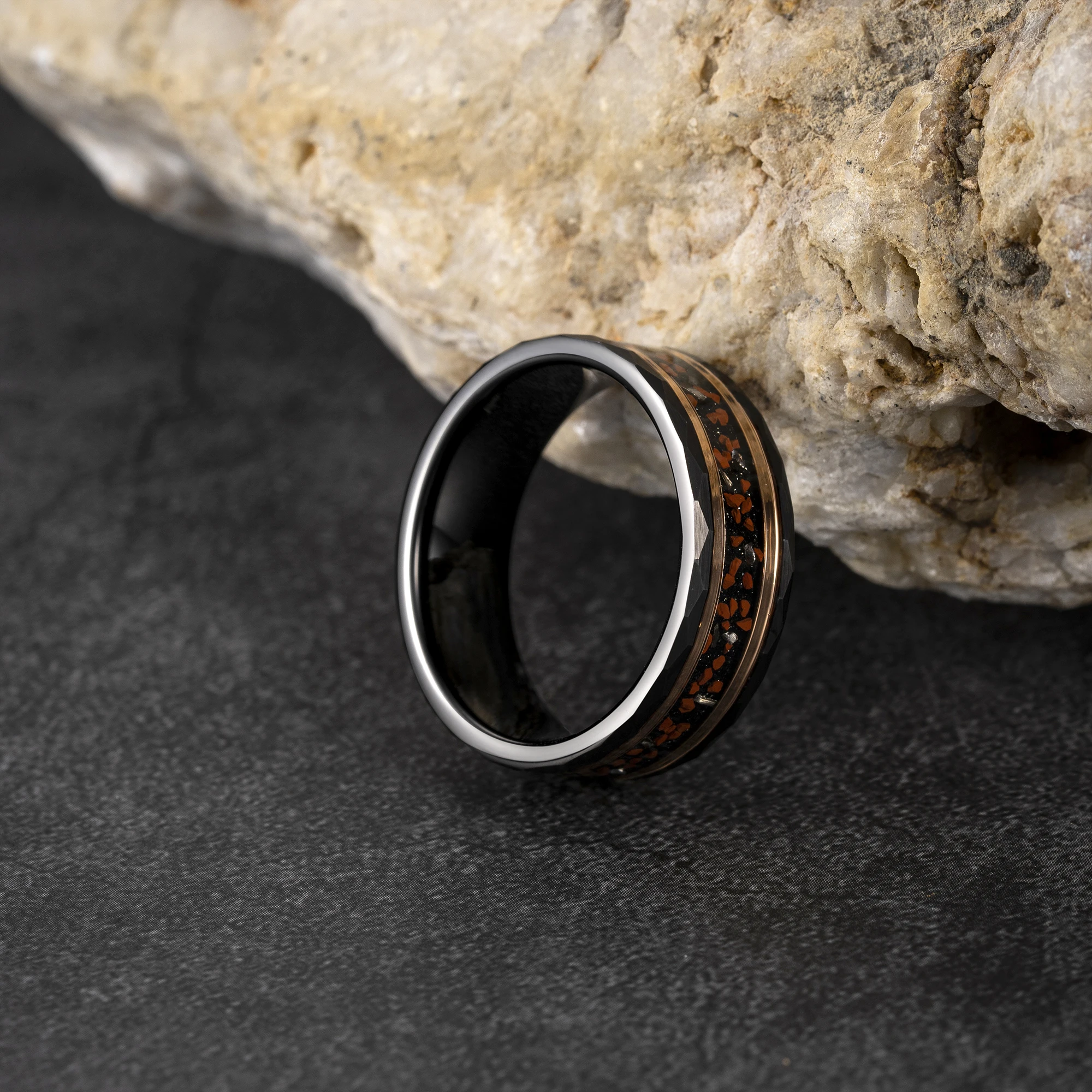 Item Model | Wholesale Price Custom Dinosaur Stone Rings Men Black Ring Tungsten Ring Meteorite Anillos Tungsten Fashion Jewelry |