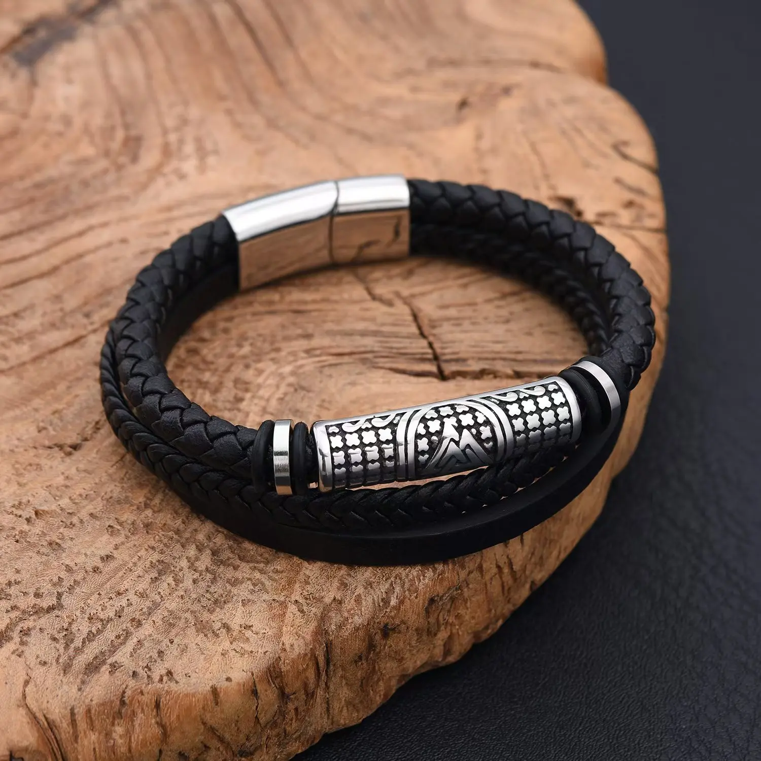 Item Model | Wholesale Price Men 316L Stainless Steel Black Gold Silver Plated Leather Bracelet for Men 18cm 19cm 20cm 21cm 22cm |