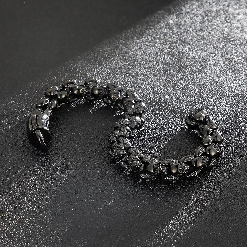 Wholesale Pulseras Hombre Punk Jewelry Adjustable Mens Skull Chain Stainless Steel Bracelet