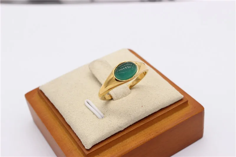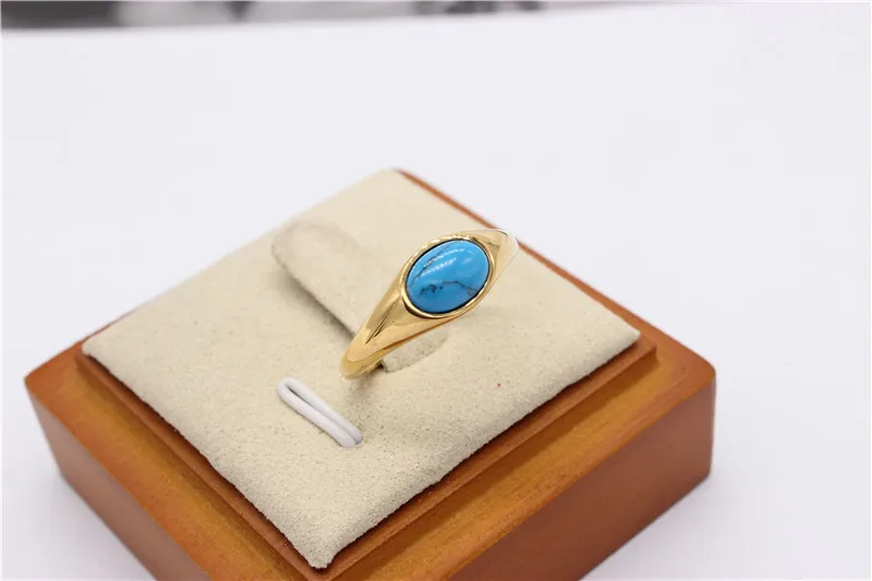 • Wholesale Retro Hip Hop Style New Stainless Steel Jewelry 18k Gold Mosaic Natural Stone Turquoise Ring for Women