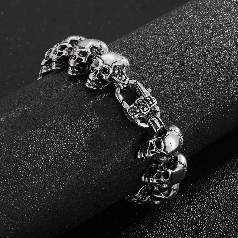 Wholesale Skull Link Bracelet Necklace Mens Stainless Steel Large Biker Gothic Style High Polished