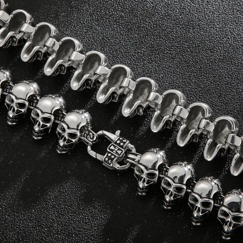 • Wholesale Skull Link Bracelet Necklace Mens Stainless Steel Large Biker Gothic Style High Polished